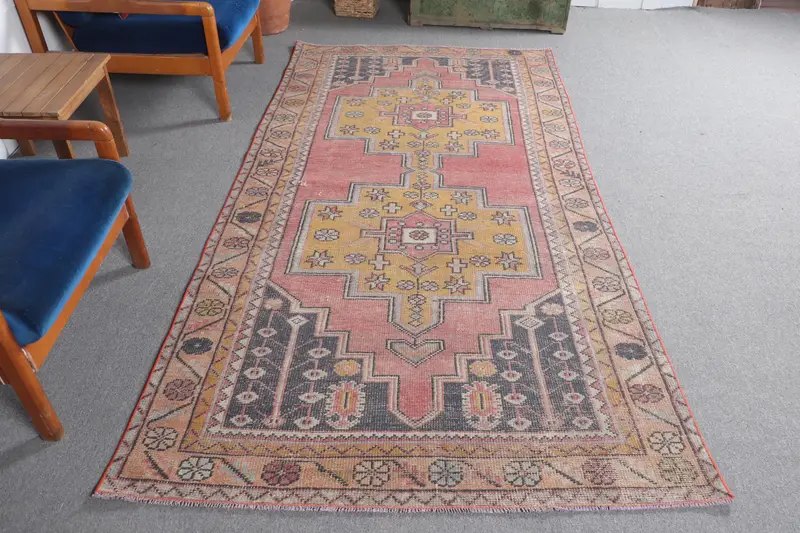 Kırmızı Oryantal Halı, Sarı Desenli 4,6x8,8 ft