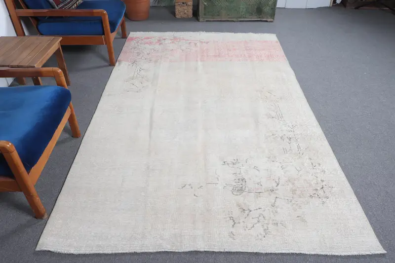 Kırmızı Bordürlü Zarif Bej Halı, 5,2x8,6 ft