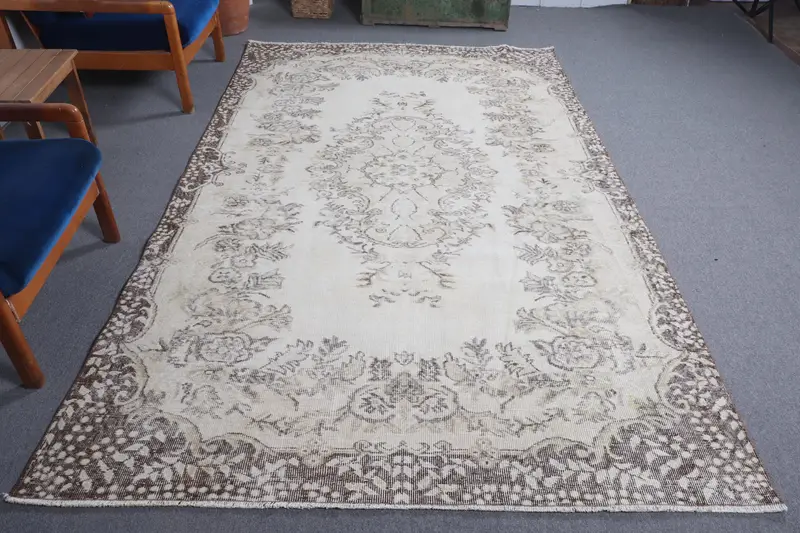 Zarif Bej Halı, 5,7x9,4 ft Çizgili, Geometrik Şekilli