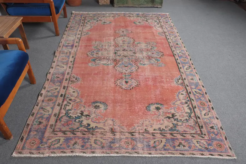 Kırmızı İkat Halı, Mavi Desenli 5,2x8,8 ft