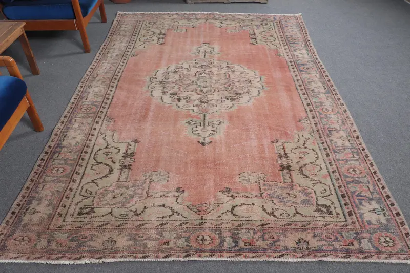Canlı Turuncu ve Yeşil Halı, 6,1x8,8 ft Patchwork Tasarım