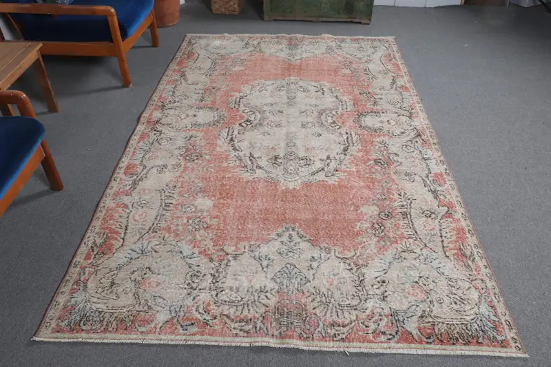 Turuncu ve Yeşil Soyut Halı, 5,3x8,6 ft Canlı Dekor