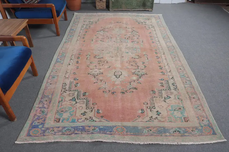 Canlı Turuncu Halı, 5,5x9,4 ft Yeşil Bordürlü Tasarım