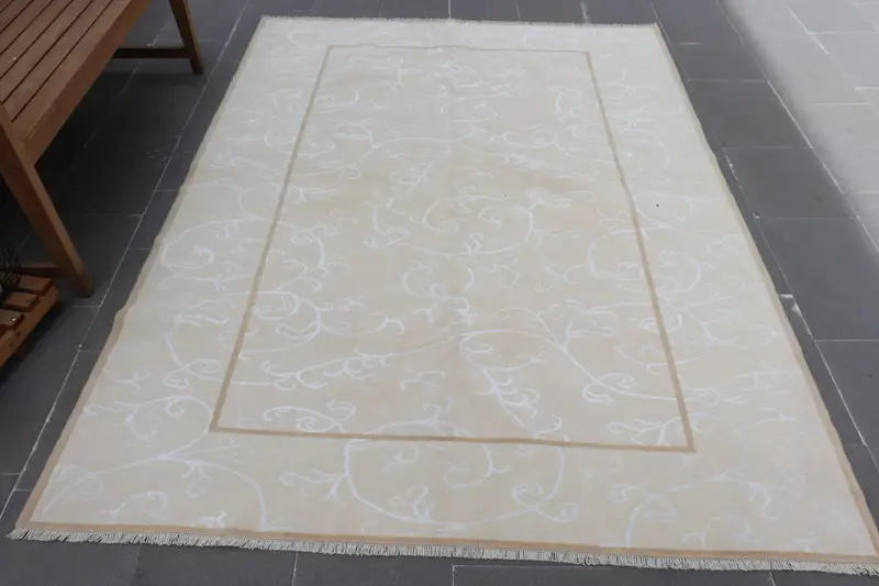 Zarif Bej Halı, Geometrik Çiçek Motifleri 5,6x7,6 ft