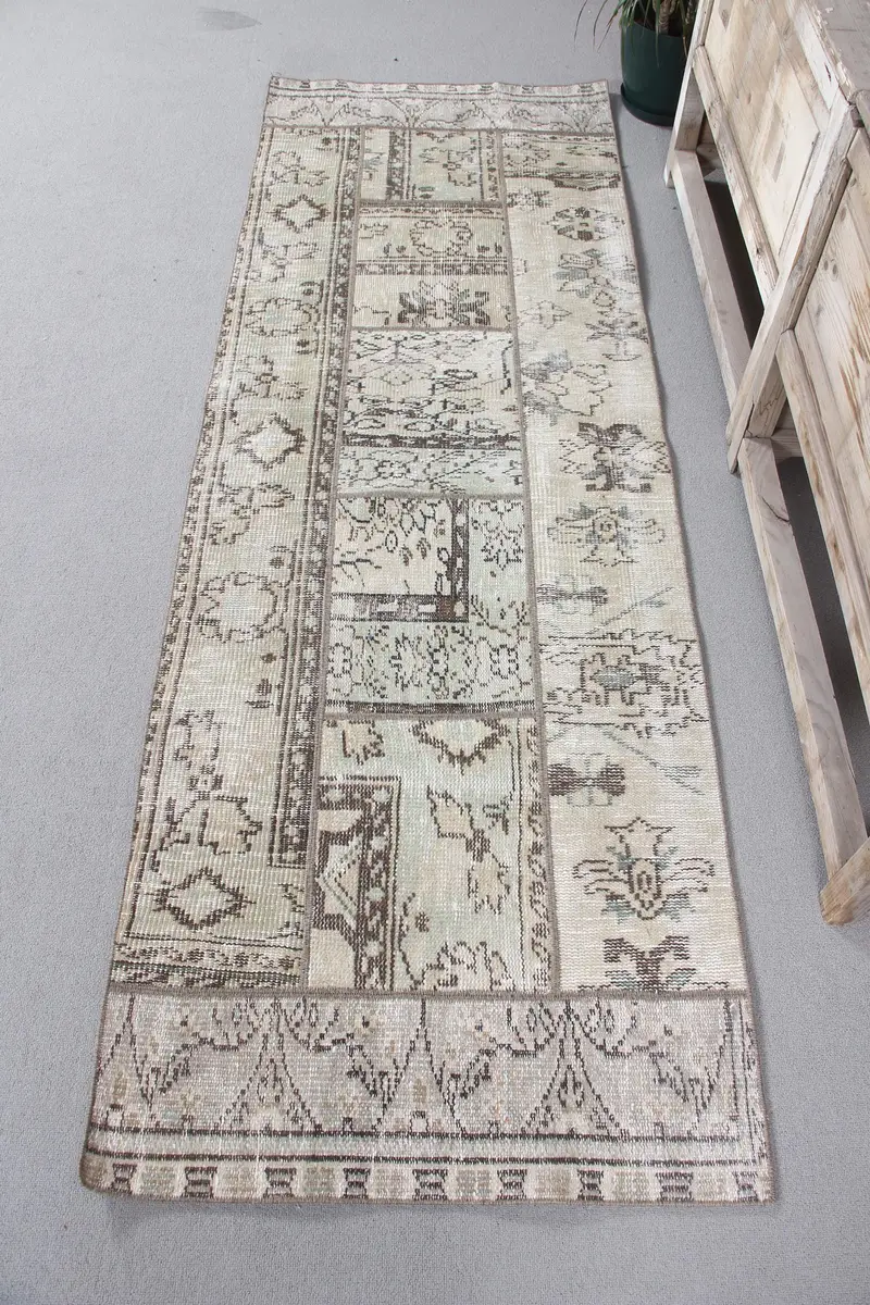 Zarif Yeşil Çiçekli Halı, 2,5x7,4 ft Şık Dekor