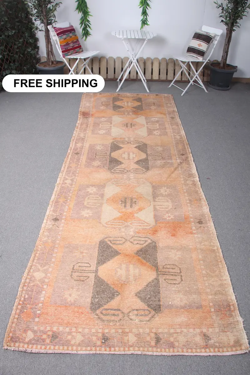Turuncu ve Mor Puantiyeli Halı, 3,9x11 ft Canlı Dekor
