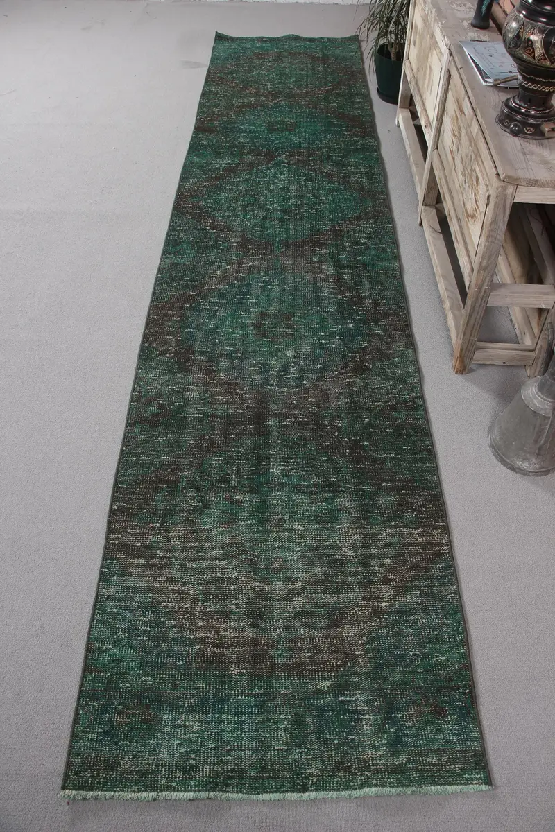 Yeşil ve Mor Puantiyeli Halı, 2,6x12,3 ft