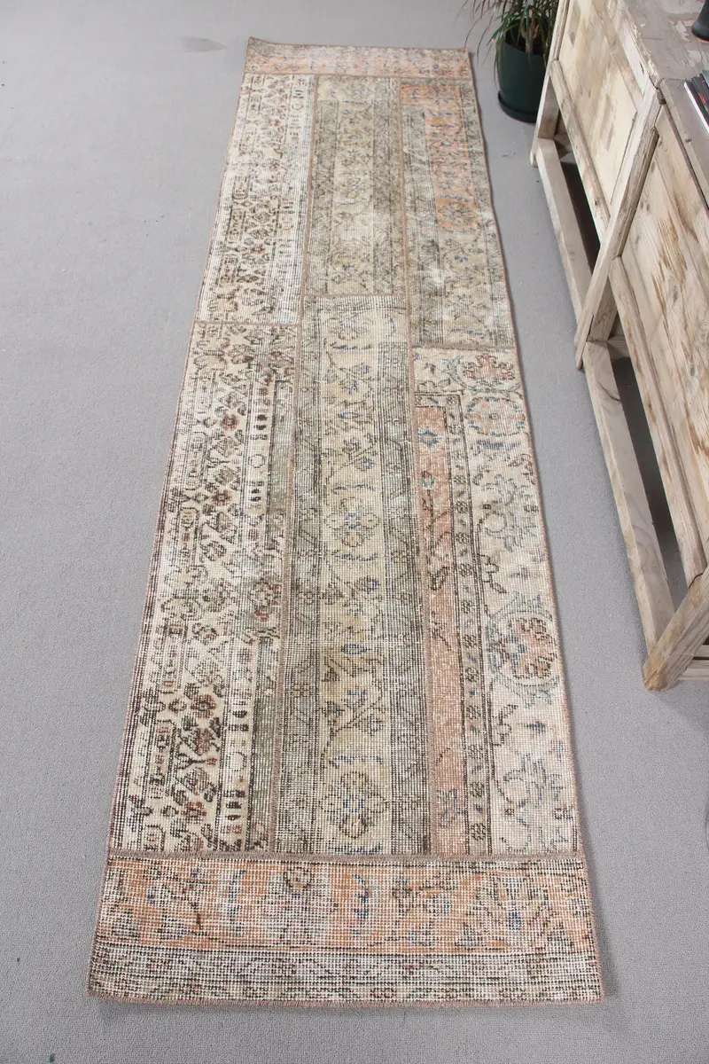 Zarif Bej ve Turuncu Halı, 2,3x8,9 ft Botanik Tasarım