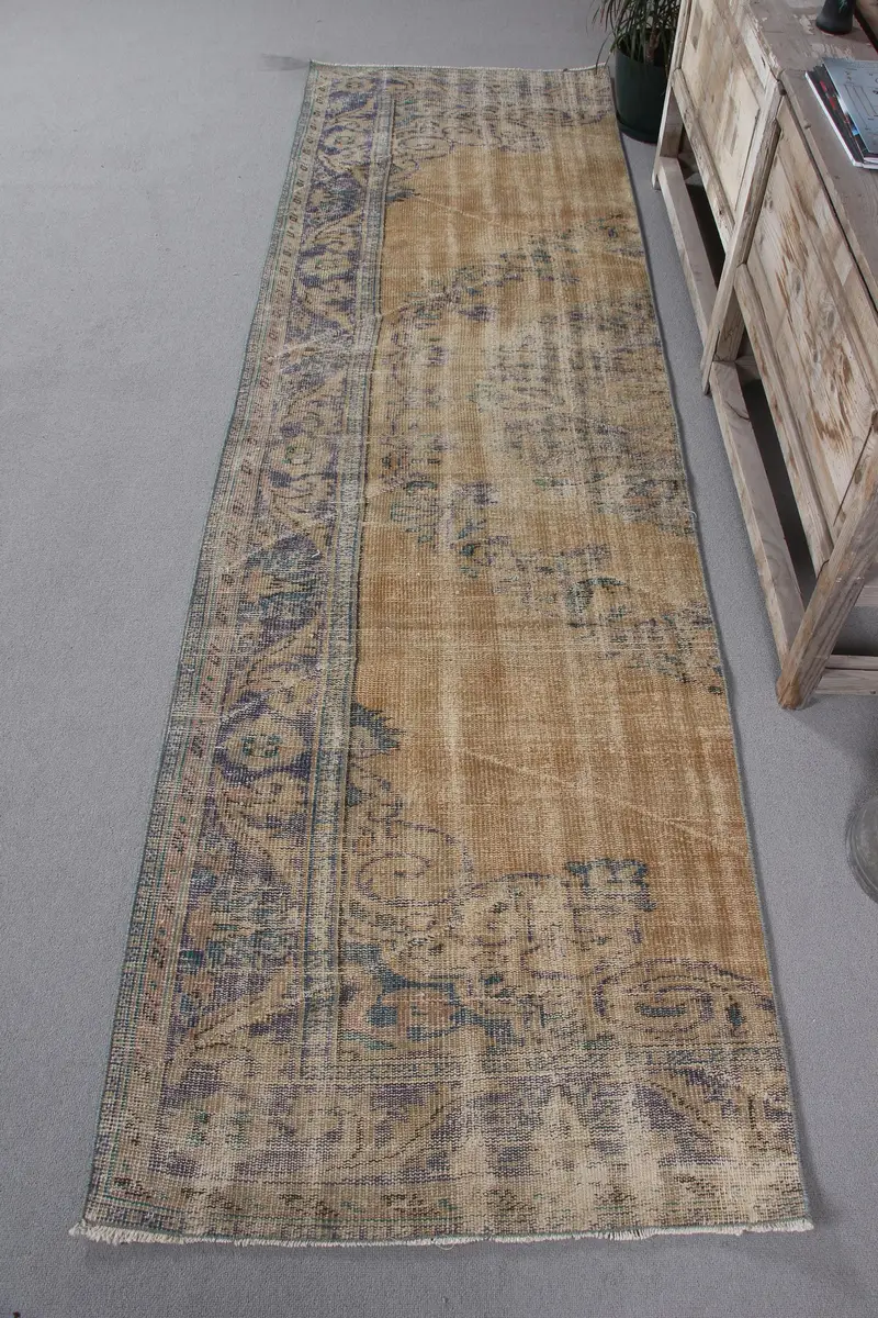 Turuncu ve Mavi Puantiyeli Halı, 2,8x9,7 ft
