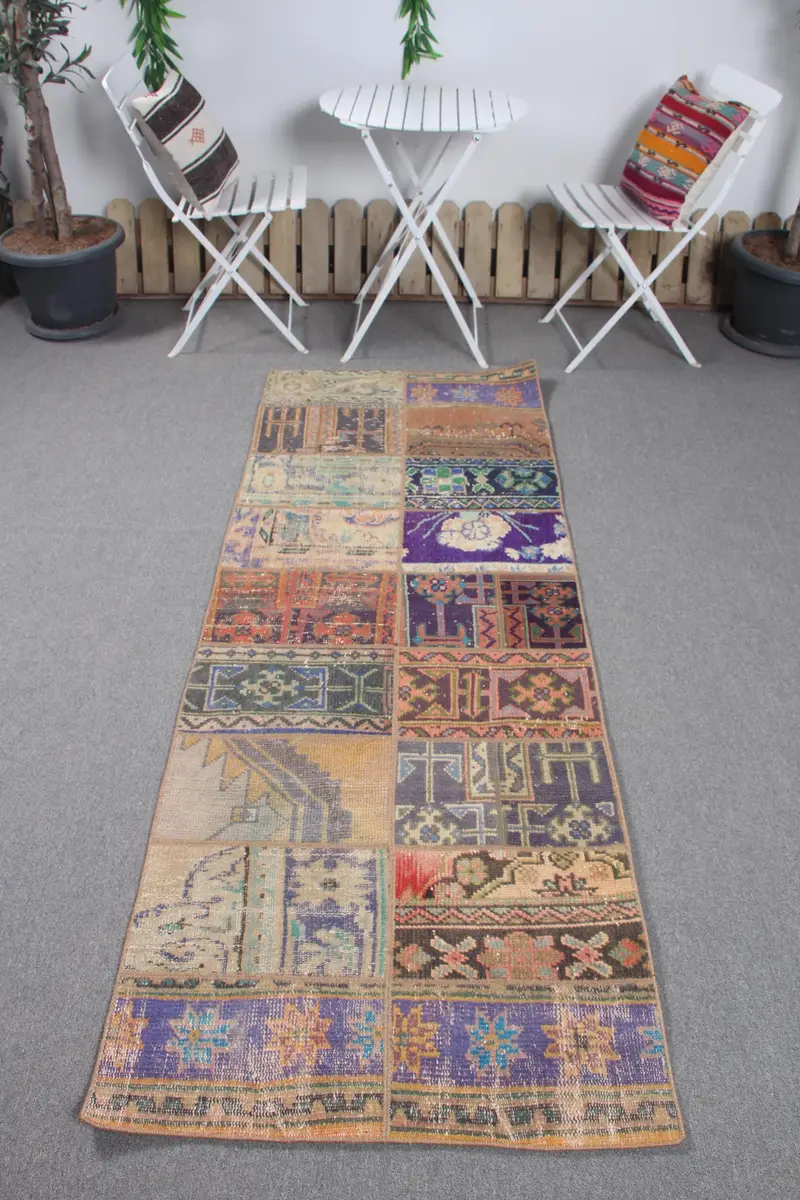Mor ve Yeşil Kareli Halı, 2,7x7,2 ft Zarif Dekor