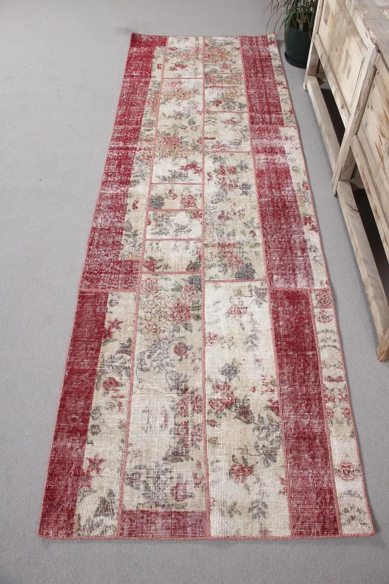 Zarif Bej ve Kırmızı Halı, 2,8x8,6 ft Çiçek ve Geometrik