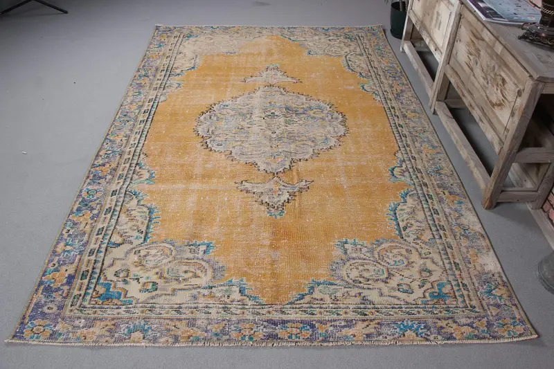 Canlı Fas Halısı, 5,6x8,5 ft Turuncu ve Yeşil