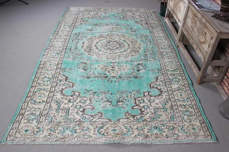 Zarif Yeşil Çiçekli Halı, 5,7x9,2 ft Şık Dekor