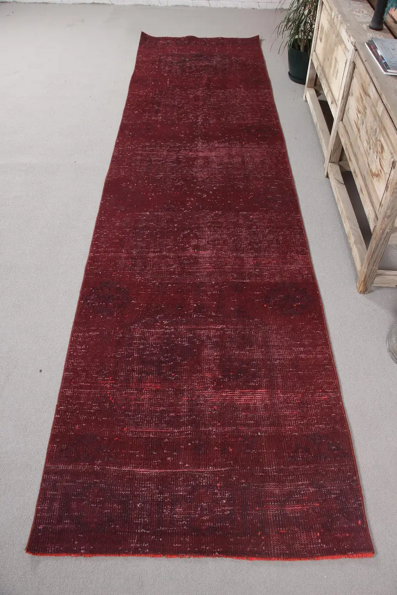 Mor İran Halısı, 2,9x11,4 ft Zarif Dekor