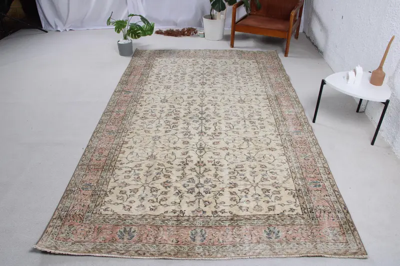 Bej Güneybatı Halısı, 5,2x8,9 ft Mavi Vurgular