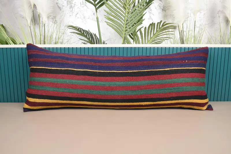 Kırmızı & Yeşil Çizgili Kırlent, Vintage İşlemeli Kırlent
