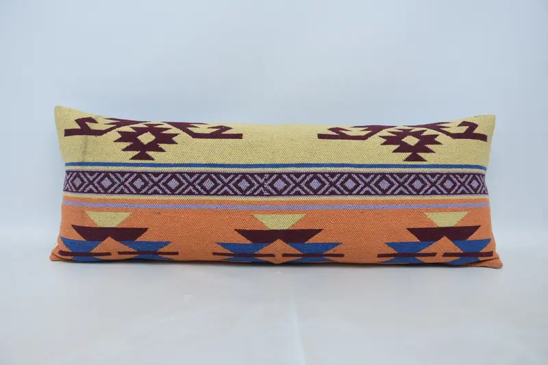Turuncu & Bronz 16x42 Dikdörtgen Kırlent, Vintage El Yapımı Yastık