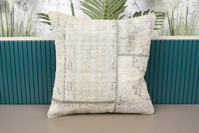 Bej Nakışlı Patchwork Kırlent, 20x20 El Yapımı Kırlent