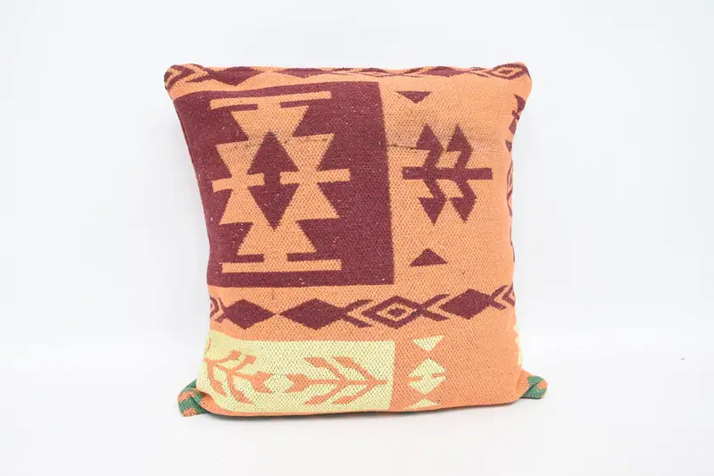 Turuncu & Kırmızı Geometrik Kırlent, Vintage İşlemeli Kırlent