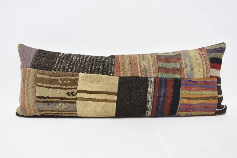 Nakışlı Kahverengi & Mor Kırlent, 16x42 El Yapımı Kırlent