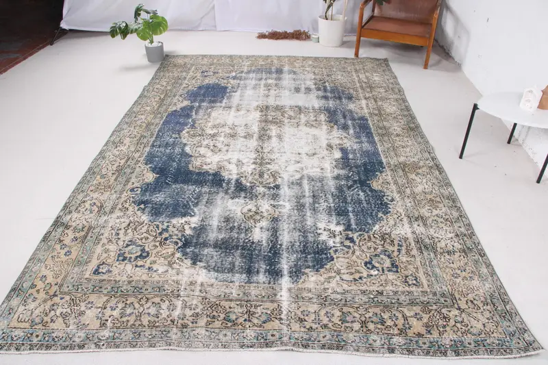 Mavi İran Halısı, Yeşil Desenli 6,6x10,2 ft