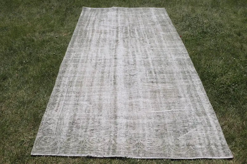 Zarif Yeşil ve Bej Halı, 4,7x9,1 ft Geometrik Çiçek