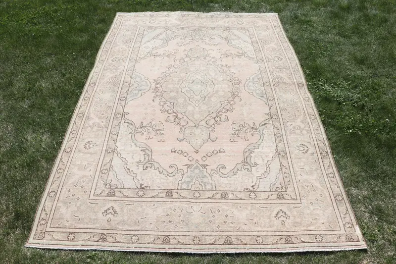 Zarif Bej Halı, Yeşil Vurgulu 6,4x9,9 ft