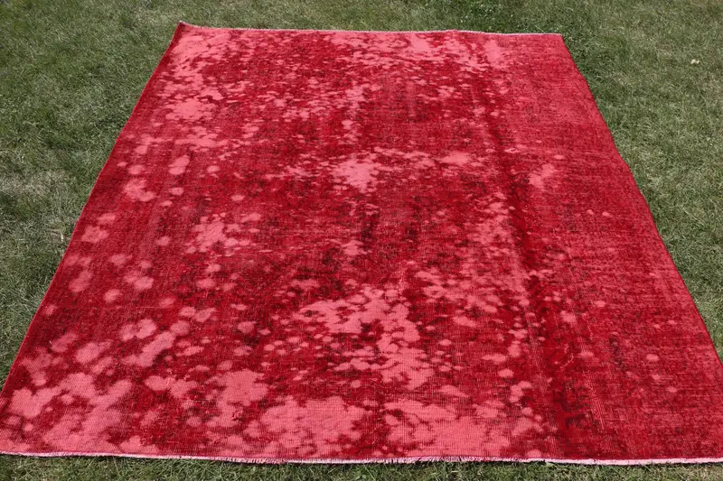Kırmızı & Kahverengi Çizgili Halı, 6x6.7 ft Zarif İlave