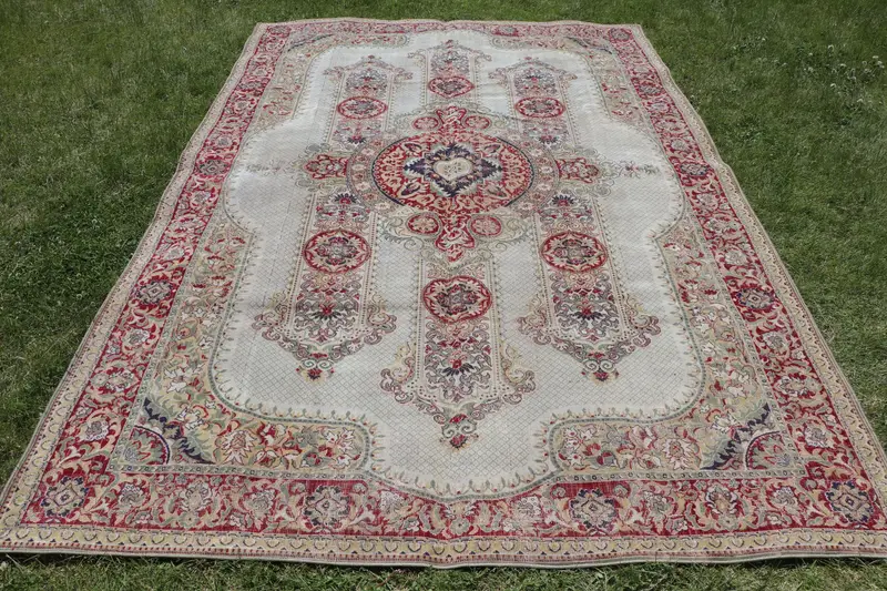 Elegant Bej & Kırmızı Halı, 190x285 cm Geometrik Çiçek