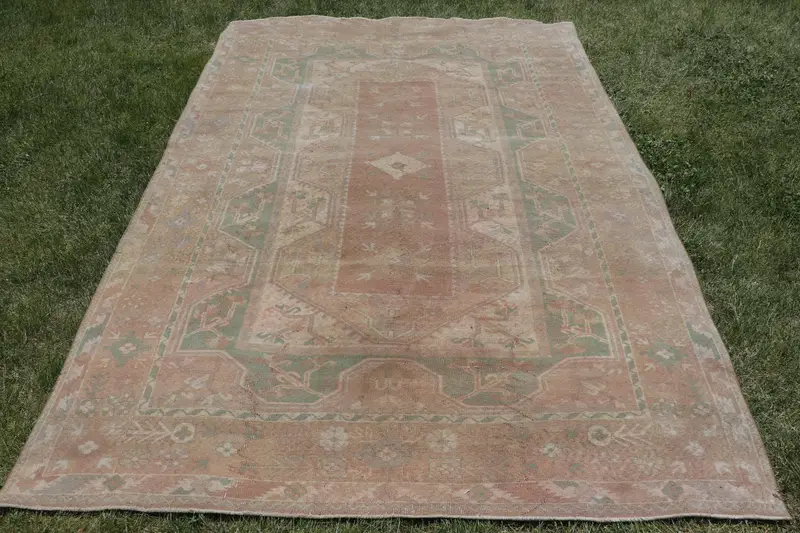 Kahverengi Ombré Halı, 6,2x9,2 ft Zarif Yeşil Vurgulu