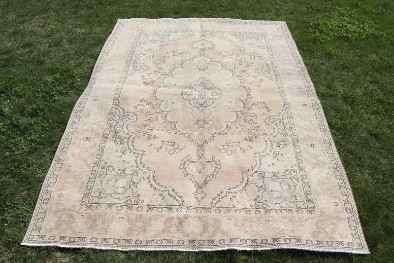 Turuncu ve Siyah Halı, 6,4x9,4 ft Çizgili Geometrik Tasarım