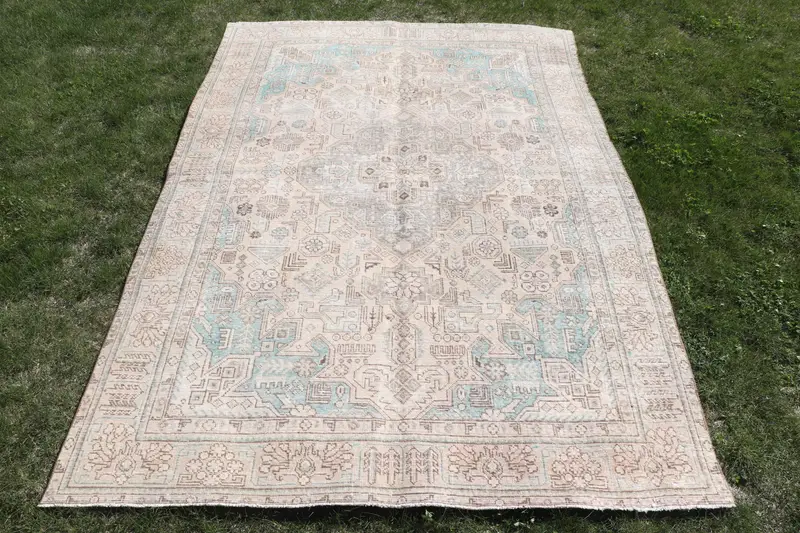 Zarif Bej ve Mavi İran Halısı, 6,3x9,5 ft