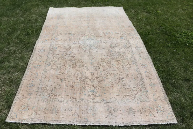 Canlı Turuncu Halı, 6,6x10,6 ft Çizgili, Geometrik Şekilli