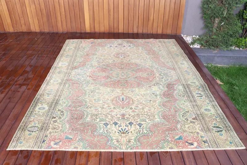 Zarif Bej Oryantal Halı, Kırmızı Desenli 6,5x8 ft
