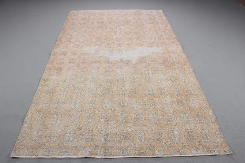 Sarı ve Yeşil Halı, 5,4x9,1 ft Çizgili Geometrik Tasarım