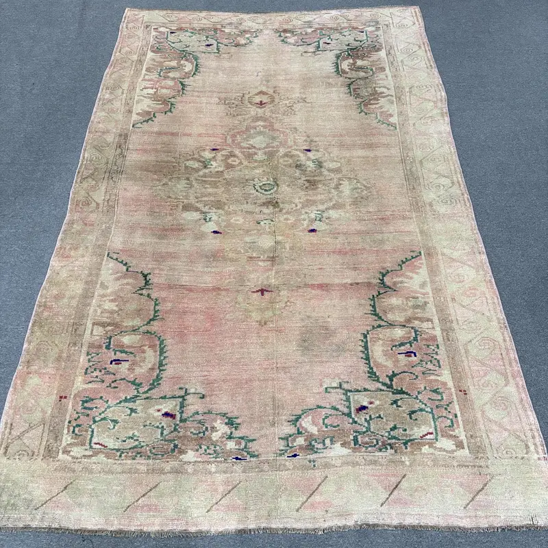 Zarif 6x10 ft Halı, Pembe ve Yeşil Çiçekli ve Paisley