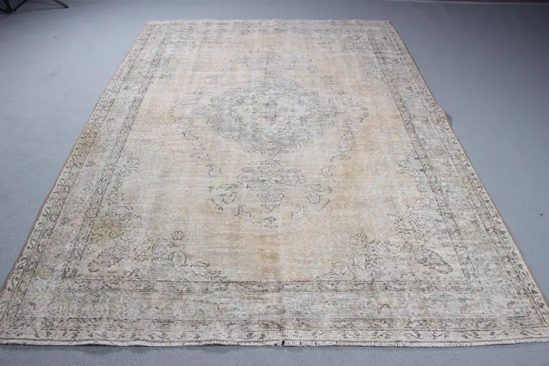 Canlı Turuncu Halı, Yeşil Vurgulu 6,4x9,1 ft