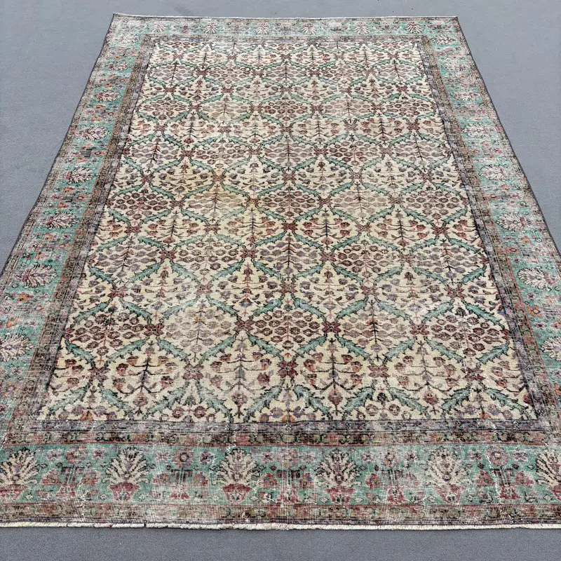 Zarif Bej Güneybatı Halısı, 6,5x9,3 ft Yeşil Vurgular