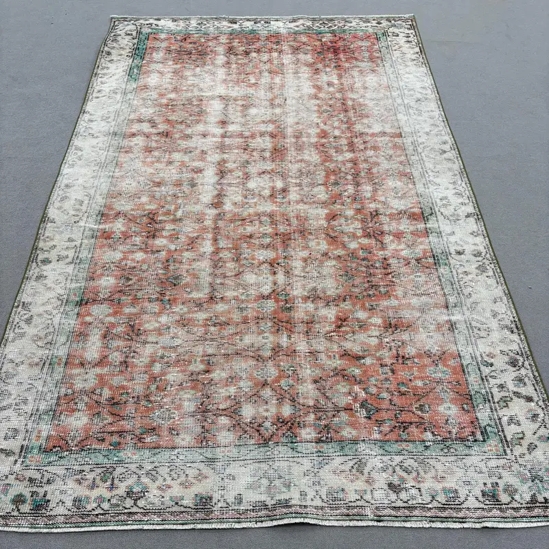 Turuncu ve Yeşil Soyut Halı, 5,3x8,5 ft Canlı Dekor
