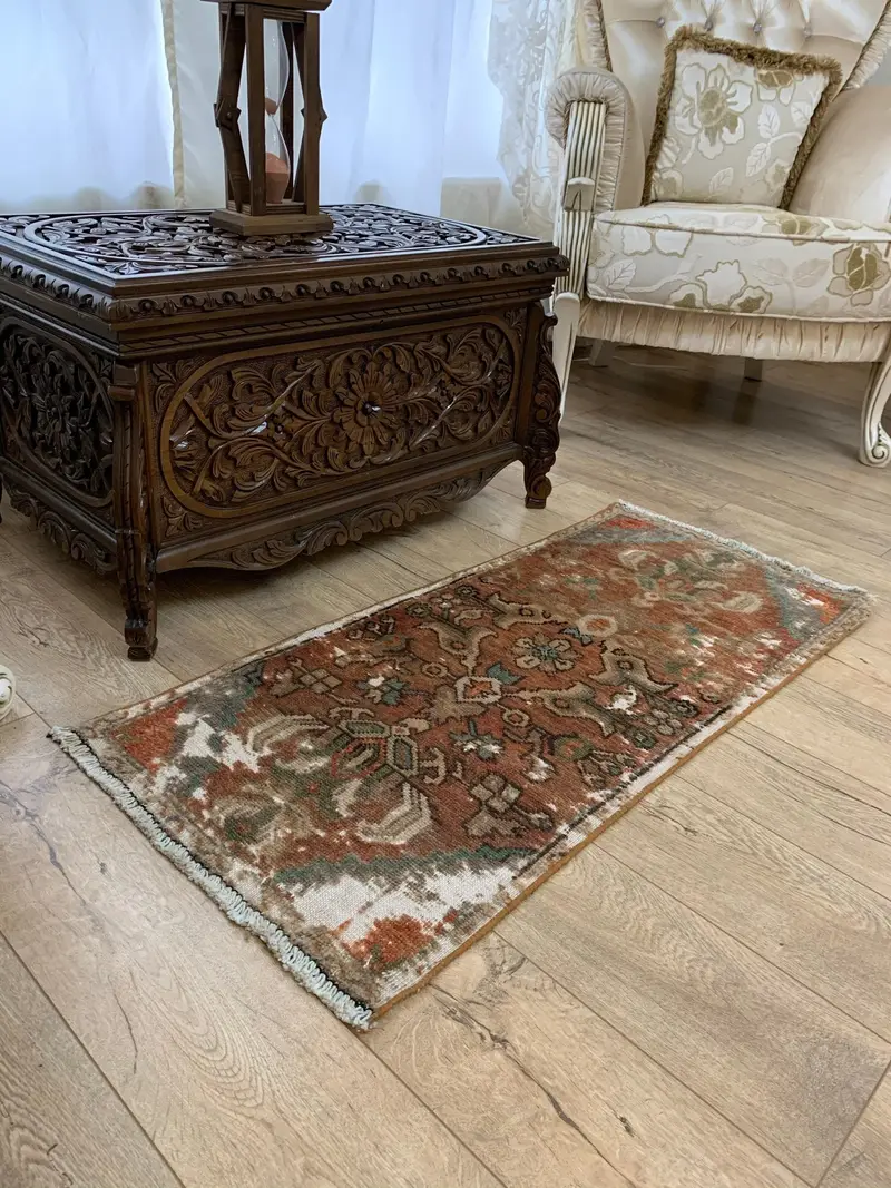 Kahverengi Çiçekli Halı, 1,7x3,5 ft Yeşil Paisley Vurgulu