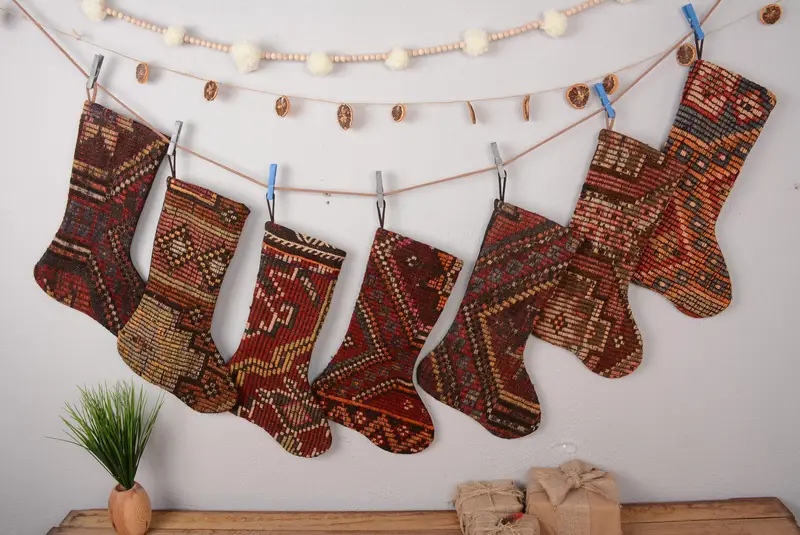Kırmızı Noel Süs Çorabı, 7 İnç Geniş Şenlik Çorabı