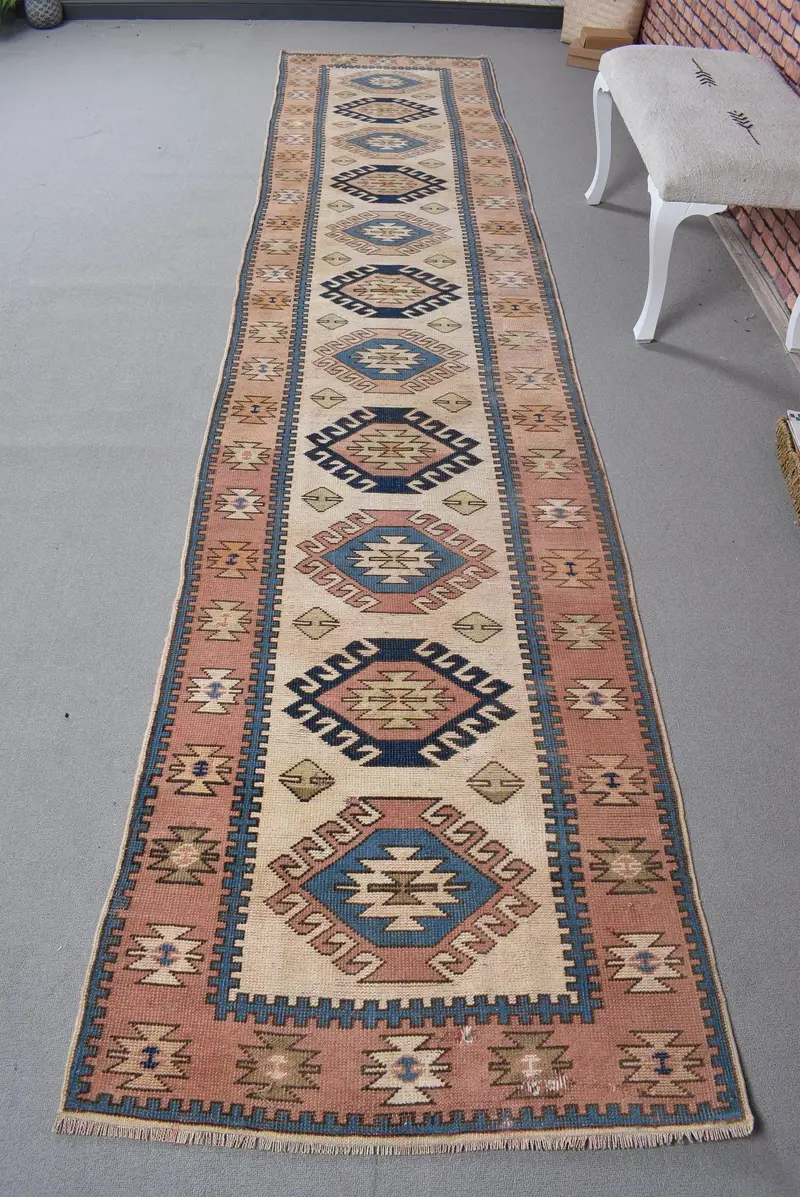 Turuncu ve Bej Patchwork Halı, 3x13,3 ft Şık Dekor