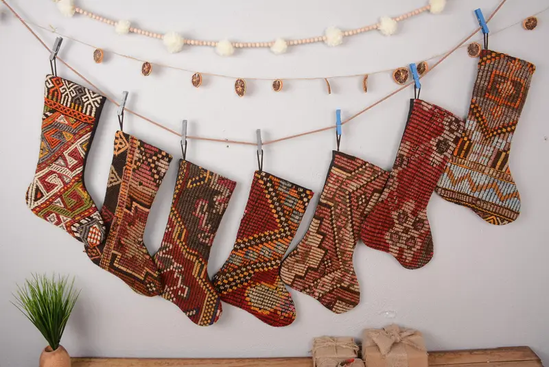 Kahverengi Süslü Bej Noel Çorabı, Şenlikli Tatil Dekoru
