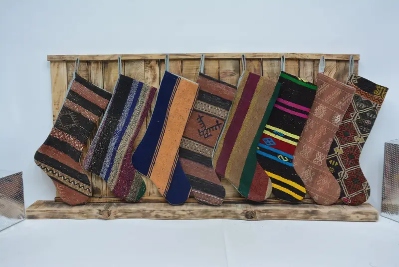 Şenlikli Kilim Noel Süsleri Çorabı, 8 İnç Geniş Noel Baba Çorabı