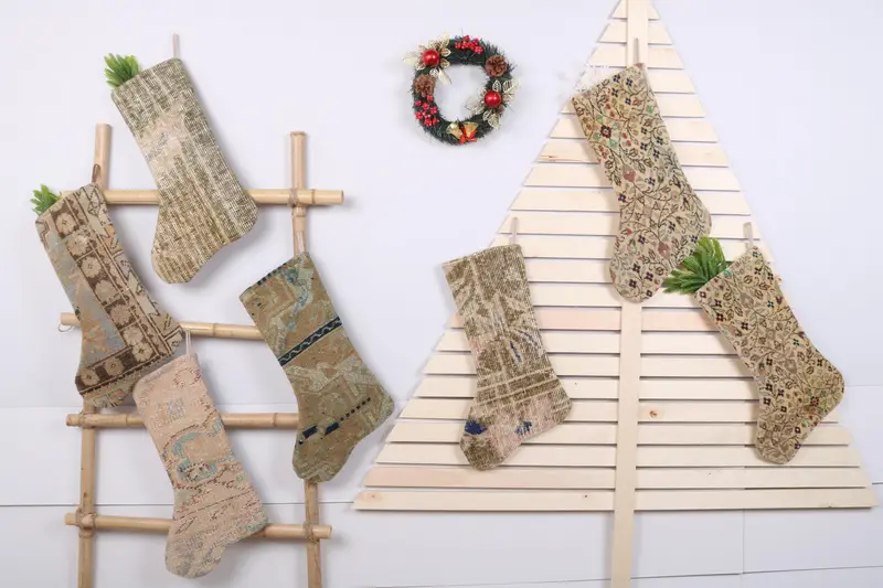 Noel Süsleri Deseni, 22 İnç Genişliğinde Lüks Benzersiz Çorap