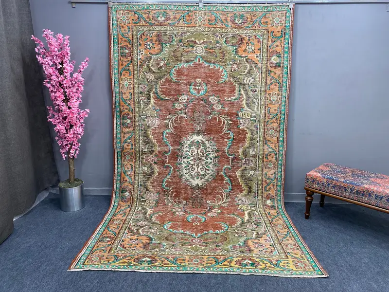 Canlı Turuncu Halı, 6x9 ft Oryantal Tasarım