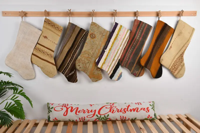 Bayram Kilim Yılbaşı Çorabı, Organik Süs Desenli Çorabı