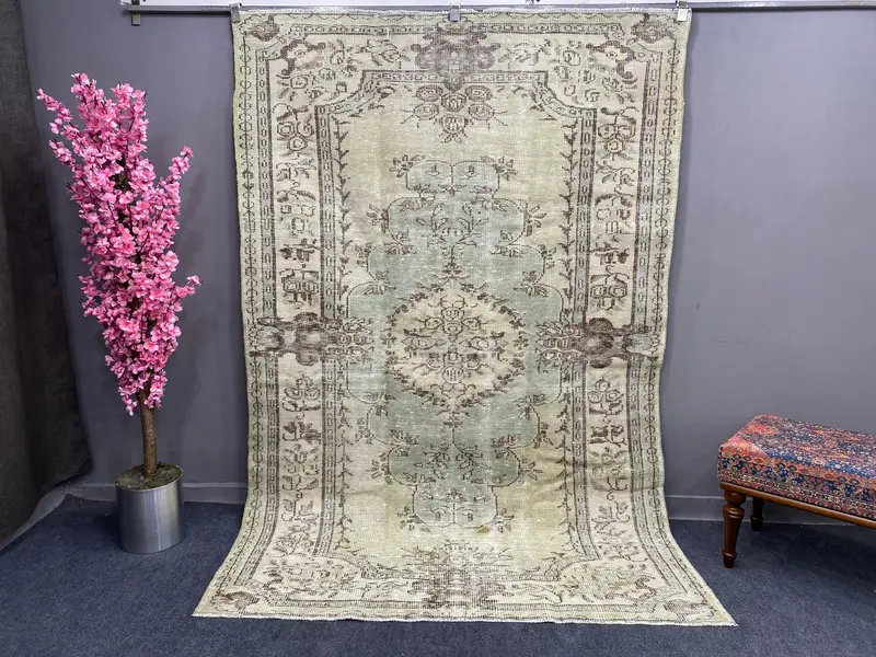 Zarif Yeşil Halı, 5,6x8,3 ft Bordürlü Tasarım