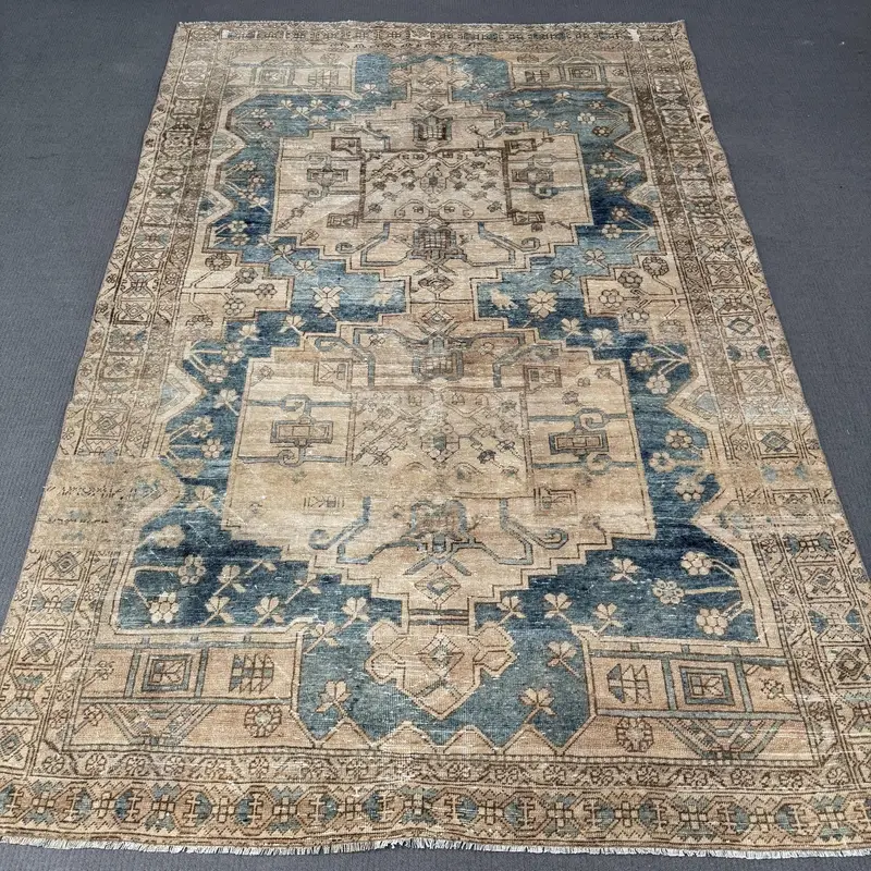 Kahverengi & Mavi Soyut Halı, 6,6x9,7 ft Şık Dekor