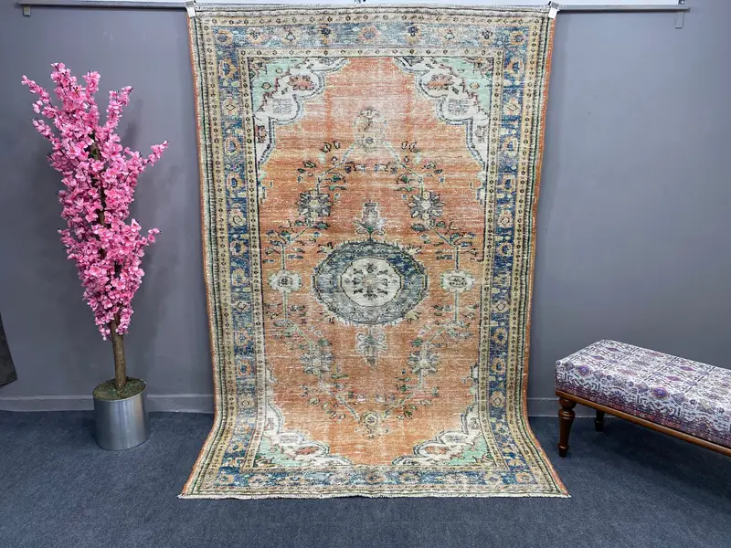 Canlı 5,2x8,4 ft Halı, Soyut Turuncu ve Mavi Tasarım